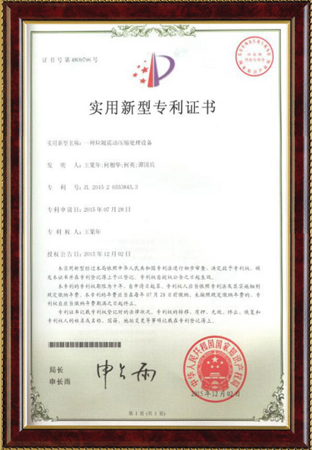 上一篇:實用新型專利證書1